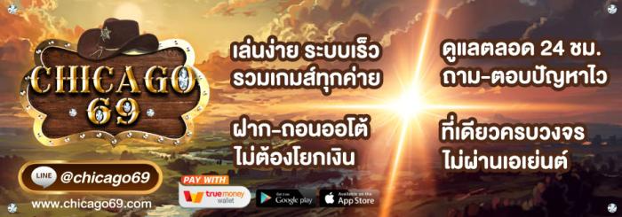 ที่สำคัญ การรับโบนัสจาก CHICAGO69 นั้นไม่ยุ่งยาก เพียงแค่ติดต่อแอดมินผ่านช่องทาง Line หรือเว็บไซต์โดยตรง ก็สามารถรับโบนัสได้ทันที โดยไม่ต้องรอนาน ระบบฝาก-ถอนอัตโนมัติที่รวดเร็วทำให้คุณไม่พลาดโอกาสในการเดิมพัน